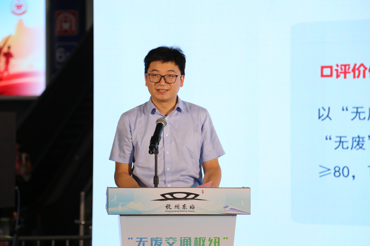 上城区副区长姚洪华对各位领导、嘉宾的到来表示热烈欢迎。他表示,杭州东站做为展示杭州城市形象的“第一窗口”,要以标准建设为牵引,系统性构建绿色低碳交通枢纽,不断丰富“无废城市”建设内涵,为新时代美丽杭州建设注入鲜活动能。